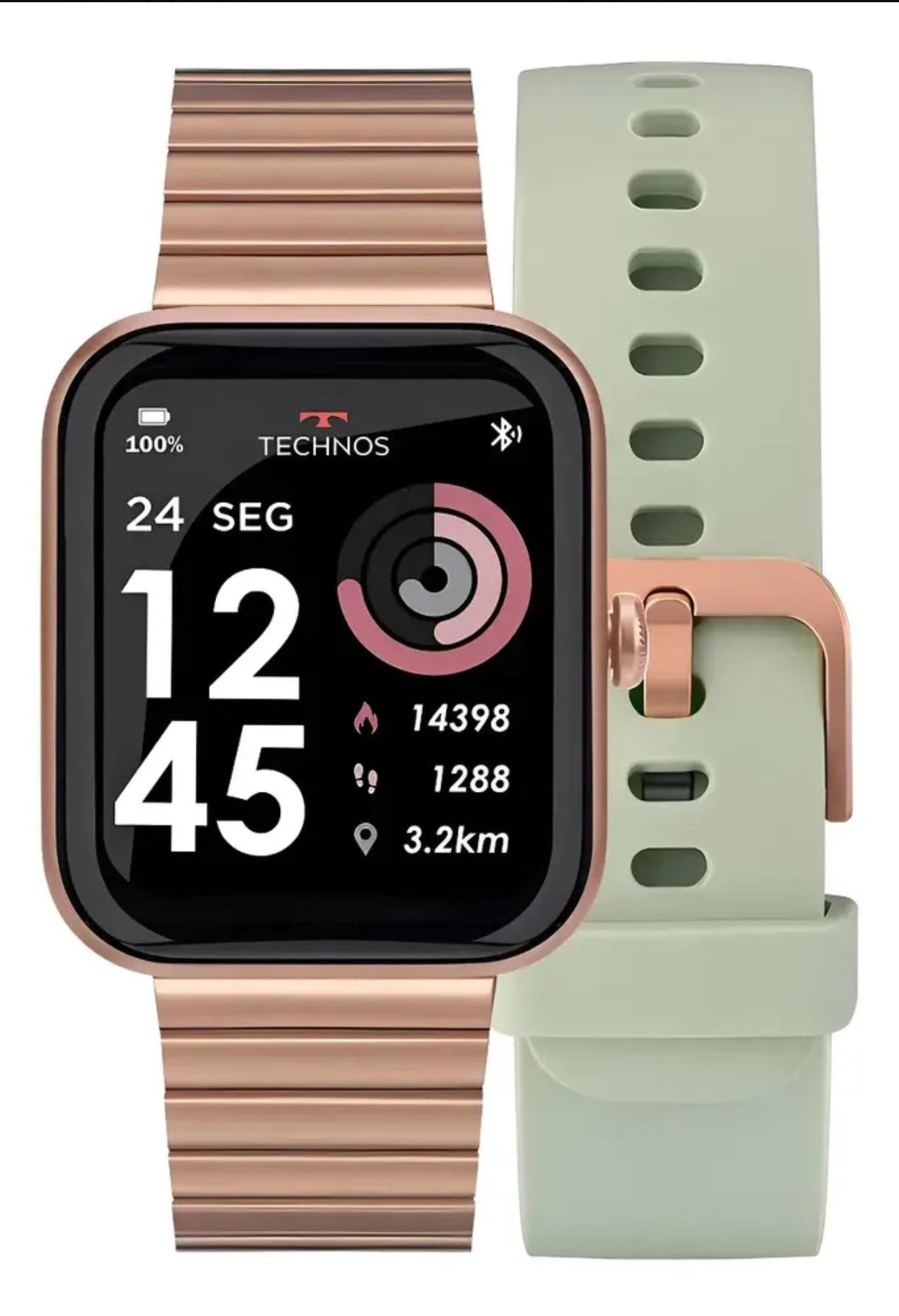 •Ele acompanha duas pulseiras: uma de aço inoxidável em banho Rosé (mas elegante) e outra de silicone verde